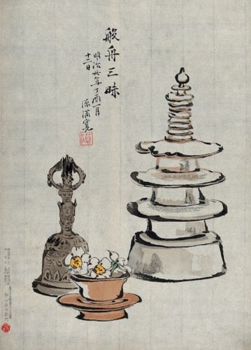 These items are used to help Buddhists to meditate. The bell symbolises Buddha’s voice and makes the sound of Dharma. In meditation, the sound of the bell helps to focus attention.