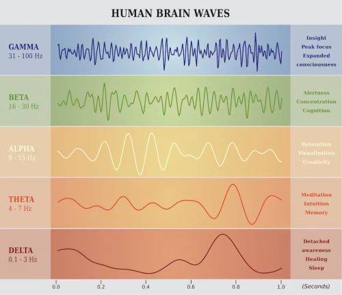 Gamma waves are associated with large-scale coordinated activities like perception, meditation or focused consciousness; beta with maximum brain activity or arousal; and theta with relaxation or daydreaming. These three wave types work together to produce, or at least facilitate, various types of human consciousness, according to Fries. But the exact relationship between electrical brain waves and consciousness is still very much up for debate.