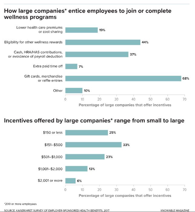 Another major issue — an aspect of workplace wellness programs that is sometimes described as invasive, even coercive — is the so-called financial incentive. Incentives offer workers discounts on their health insurance, or other perks, if they do a health risk assessment or biometric screening, refrain from smoking, or achieve some other kind of health benchmark.