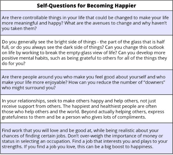 - Are you satisfied with your level of happiness? If not, are there things you might do to change it? Would you function better if you were happier?