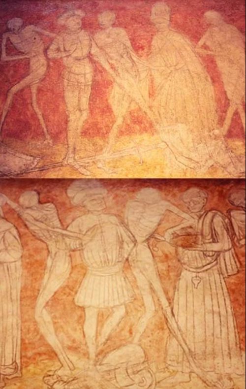 One of the more popular mural subjects that I have studied for many years was the Dance of Death: over 100 mural paintings of the theme, as well as dozens of manuscript illuminations, have been identified in England, Estonia, France, Germany, Italy, Spain and Switzerland.