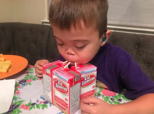In the end, it was Pediasure that started my son’s journey toward enjoying food. One day, he discovered the taste of Pediasure from chewing a hole in his feeding pump line when he was teething. He became willing to eat vanilla Pediasure. He didn’t have the oral skills to suck on a bottle or drink from a cup, but the feeding pump could deliver a few drops of formula into his mouth at a time in a way that didn’t scare him.