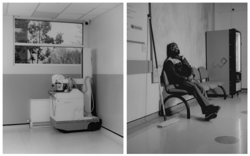 Up and down, round and round, Siba moves through the quiet main foyer of the hospital, guiding the cleaning machine along a 50-metre stretch of tiled floor. The space is still and empty at night and Siba is making sure the floors are spotless and polished before the hospital springs back to life in the morning.