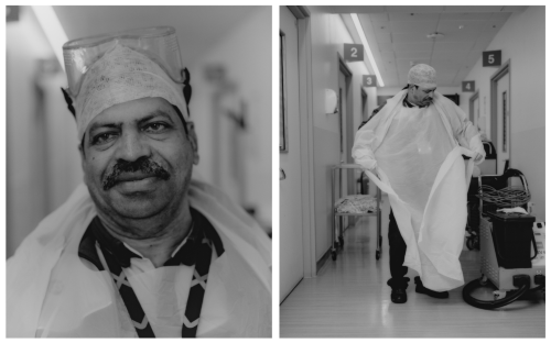 “We help each other out,” Prince says, as one of the nurses acknowledges him while he walks through the ward he’s been assigned to clean.