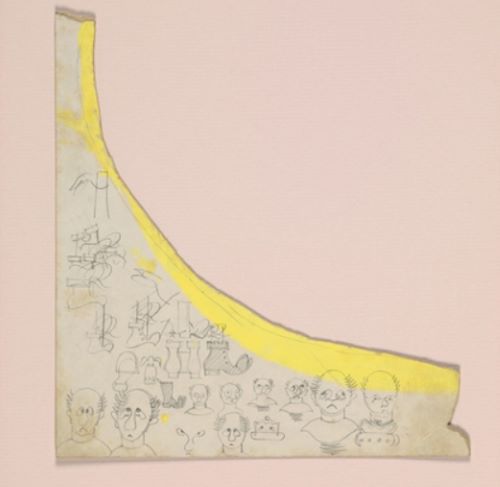 The ‘Metamorphosis’ series of works begins with a small fragment of card with some sketches and doodles. Adamson provides a commentary on the series in his book ‘Art as Healing‘. Before the sketches on the fragment, Adamson says that “previously [Ron] had come for many weeks, and just stared at the blank sheet in front of him”.