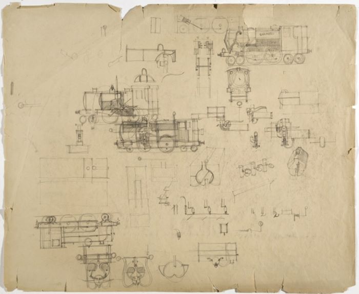 ‘Engines’ by Ron Hampshire. Adamson reports that it took another six weeks before Ron “finally summoned the courage to tackle a larger sheet of paper”. The mechanical sketches were done in pencil.