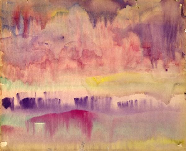 Untitled work by Ron Hampshire. After a further six months Ron took up painting. Adamson describes how Ron “covered the paper with clear water. He subsequently dipped his brush in paint and flooded the colour onto the wet paper, allowing it to form its own pattern.”