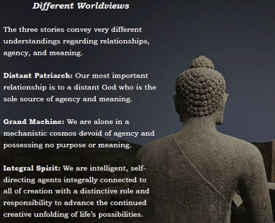 Despite their imperial legacy, the Distant Patriarch and Grand Machine cosmologies are both the product of efforts to discern and describe critical elements of the larger story of the Integral Spirit. That larger story has been with us in various forms since the beginning of human consciousness.