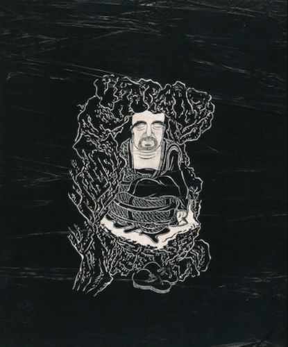 Buddha instructed followers to become aware of their breath during meditation. Lohan, one of Buddha’s disciples, sits meditating with his eyes closed.