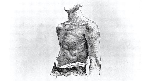 The chest of a man with asthma. Dr Konsantin Buteyko prescribed breathing to alleviate asthma symptoms.