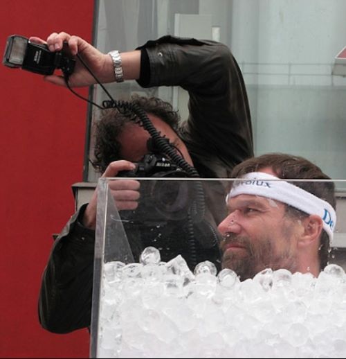 Dutch athlete Wim Hof harnesses his breath to break world records. Here he is submerged in a container of ice cubes.